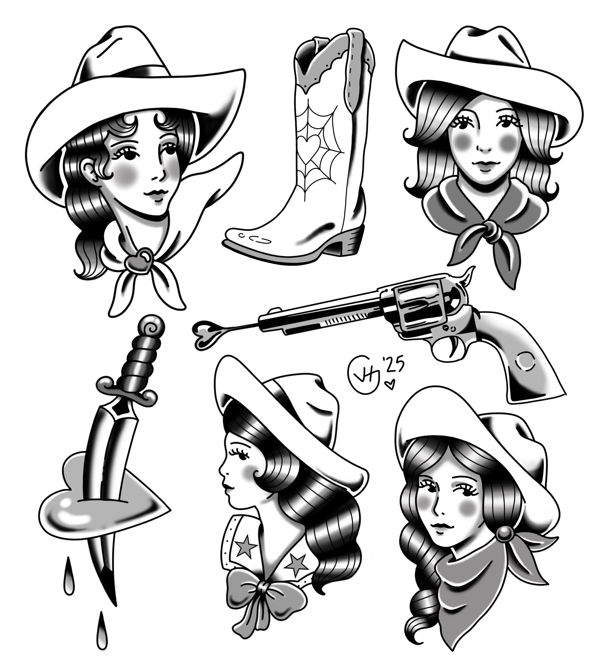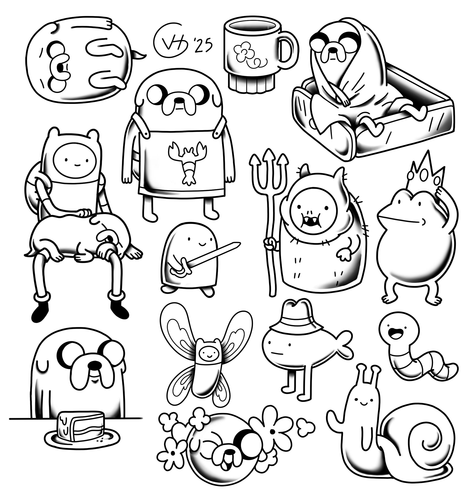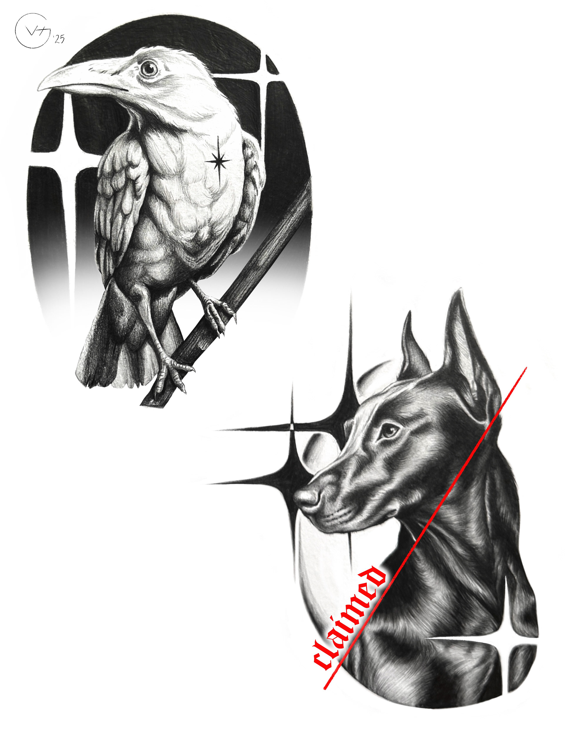Done once in color, once in black and grey