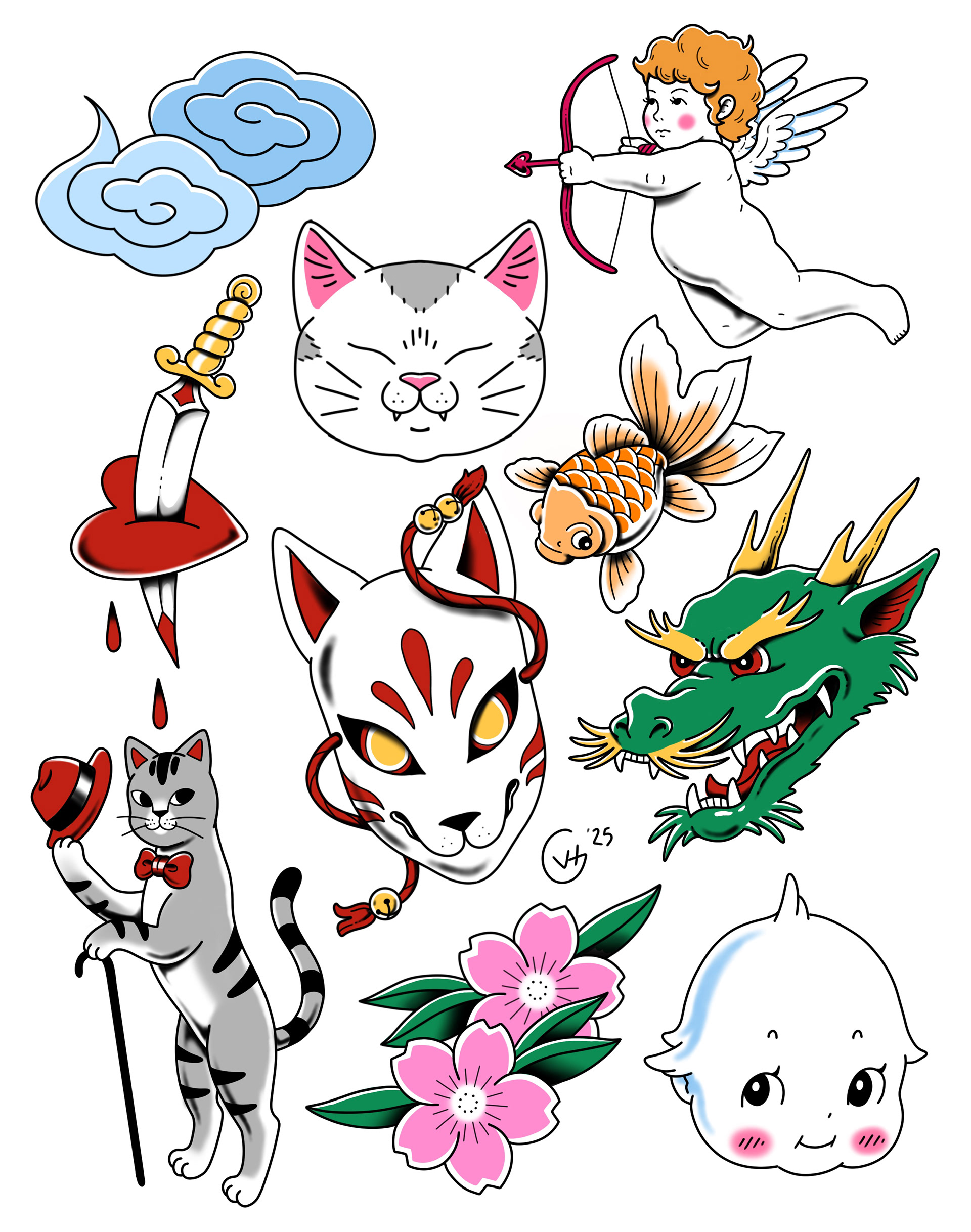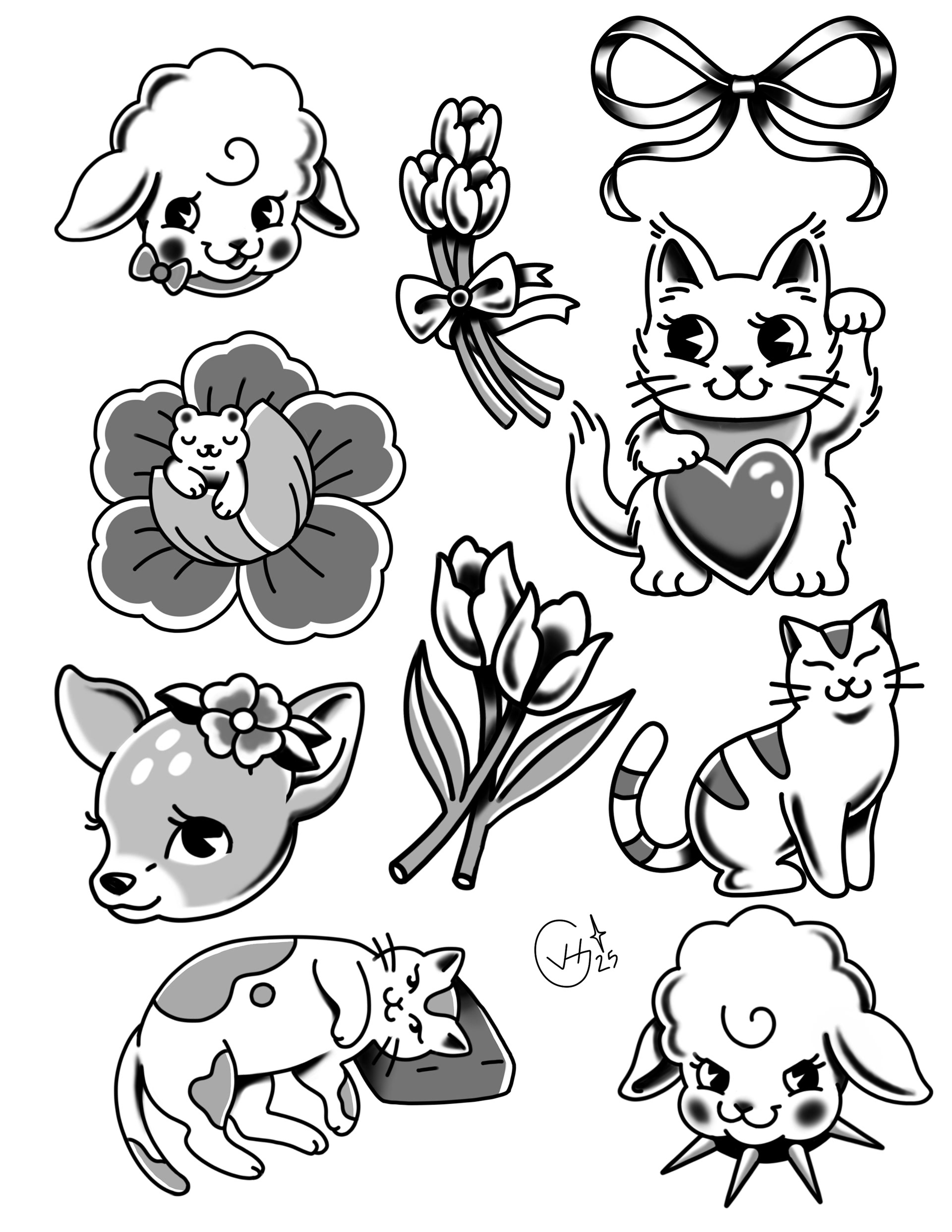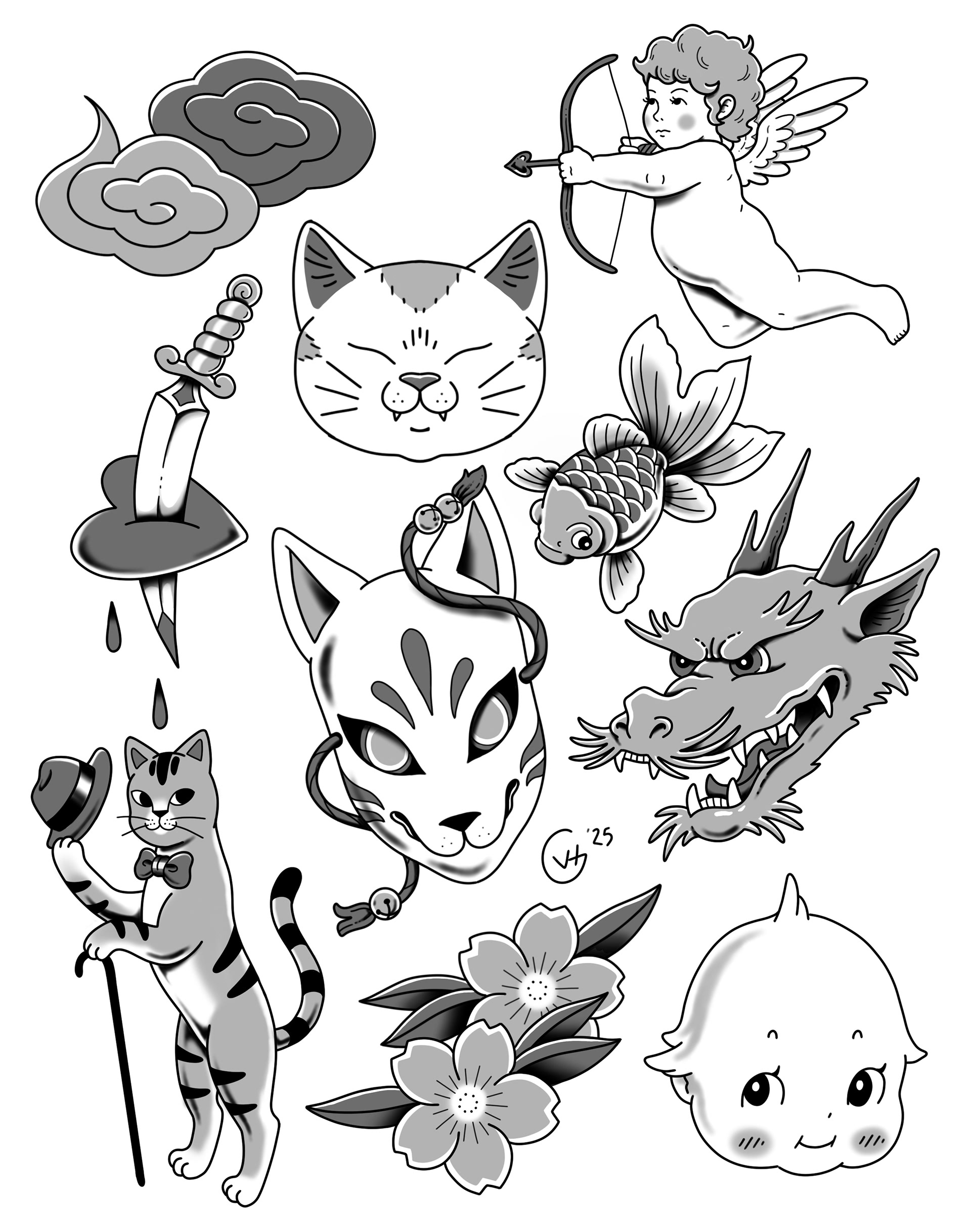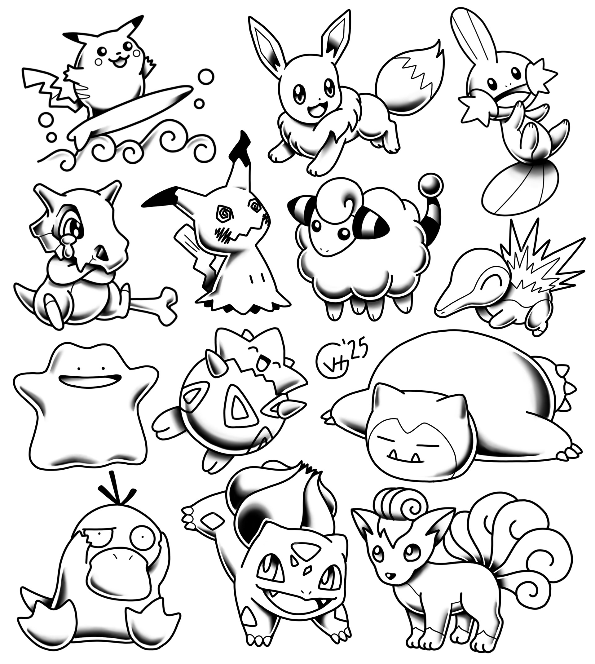 Done once in color, once in black and grey